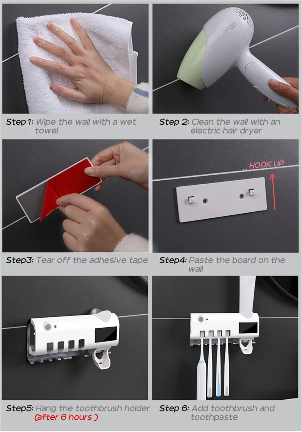 Porte-brosse à dents mural à lumière UV solaire, arabisateur de brosse à dents ultraviolet, porte-dentifrice automatique, accessoires HOAccessrespiration